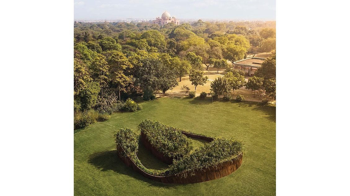 Tại Delhi vào tháng 2 này, dưới bóng Lăng mộ Humayun, một gian hàng tạm thời đã tìm cách thu hút sự chú ý đến các vấn đề bảo tồn. Được ủy quyền bởi sáng kiến nghệ thuật sáng tạo và phục hồi sinh thái Aranyani, đồng thời được tổ chức trùng với Hội chợ nghệ thuật Ấn Độ, cấu trúc tre được phủ bằng liễu gai làm từ lantana, được coi là loài xâm lấn và đội vương miện là các loài thực vật quen thuộc ở Delhi, một số bản địa và một số khác được nhập tịch. Tara Lal, người sáng lập Aranyani, cho biết: “Chúng tôi muốn nói gì khi dán nhãn thực vật bản địa hay xâm lấn? Đó là câu hỏi mà tôi muốn chúng ta bắt đầu nói đến”. Để cuộc thảo luận diễn ra, cô đã yêu cầu bộ đôi kiến trúc sư T_M.space có trụ sở tại London—Tanil Raif, 29 tuổi, người Colombia và Mario Serrano Puche, 30 tuổi, người Colombia—hãy tưởng tượng về một khu rừng thiêng mà họ hiểu là một đường xoắn ốc nhấp nhô hữu cơ. Gian hàng sẽ sớm chuyển từ Trường mẫu giáo Sunder đến một trường nữ sinh ở sa mạc Thar của Ấn Độ, nơi gian hàng sẽ được trang trí bằng những cây cỏ địa phương.
