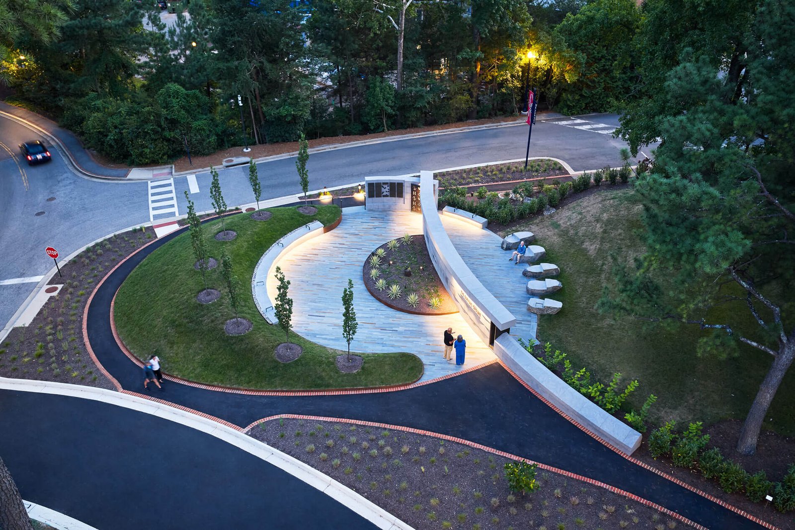 Kiến trúc cảnh quan của Waterstreet Studio kết hợp các phong tục chôn cất truyền thống. Các loại cây như yucca và cây dừa cạn tượng trưng cho trí nhớ và hàng rào nguyệt quế tạo nên “ranh giới sống của sự bảo vệ”.