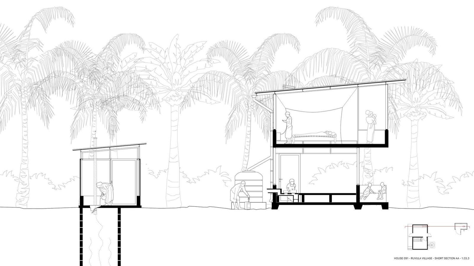 bản vẽ mặt cắt nguyên mẫu nhà ở nông thôn cho vùng châu Phi cận Sahara