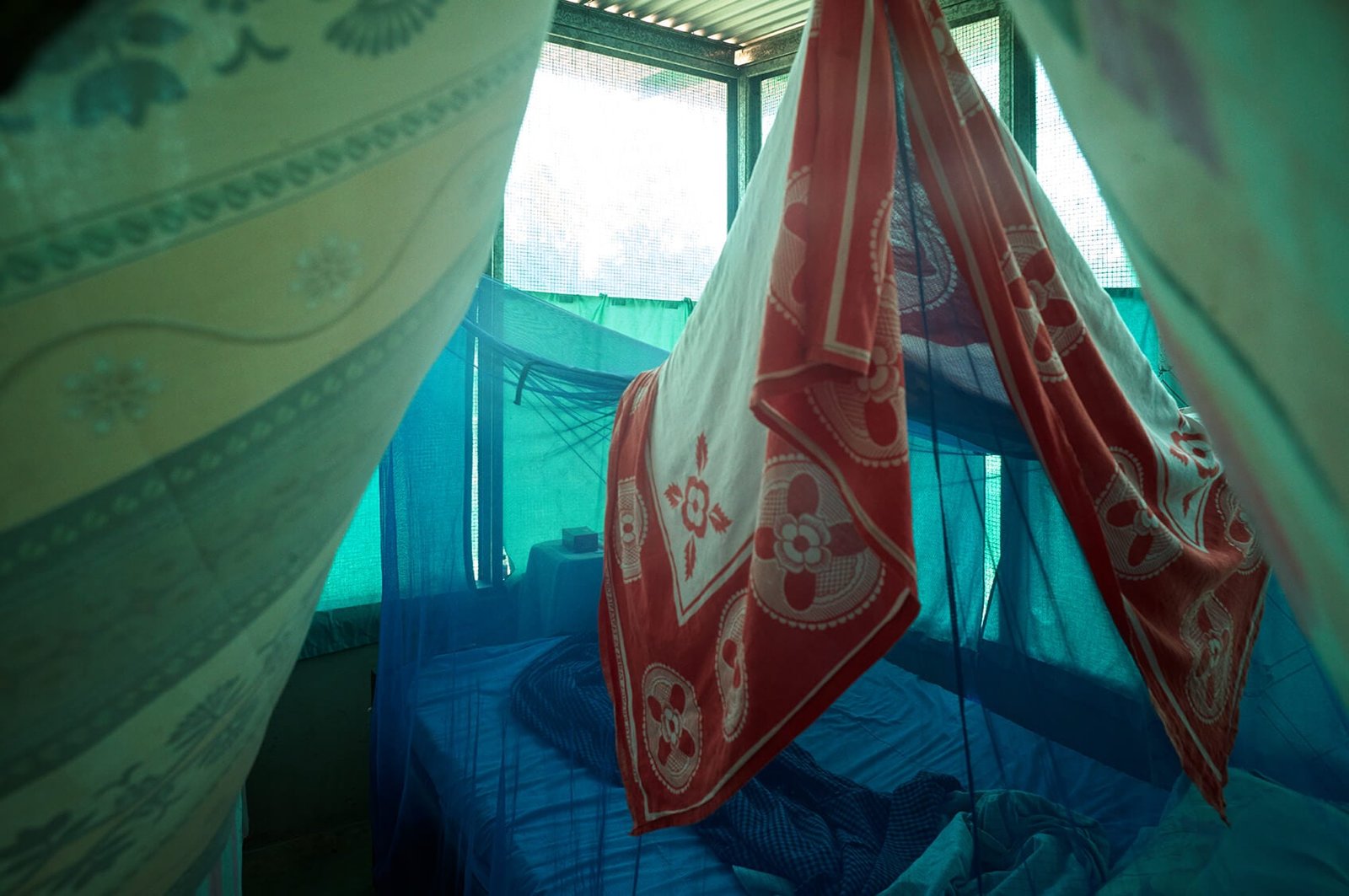Phòng ngủ nằm ở tầng 2, phía trên cửa chống muỗi. (Julien Lanoo)