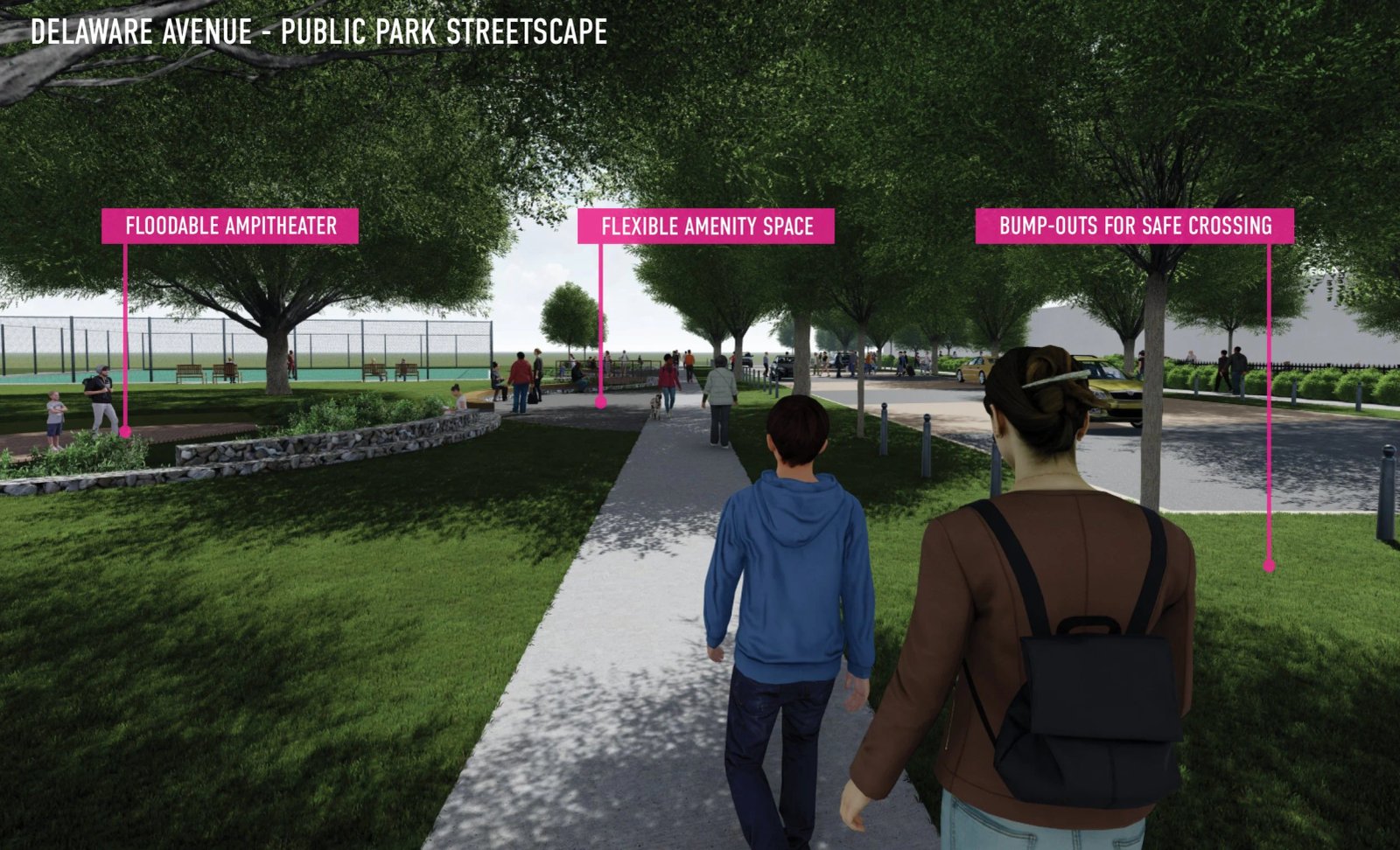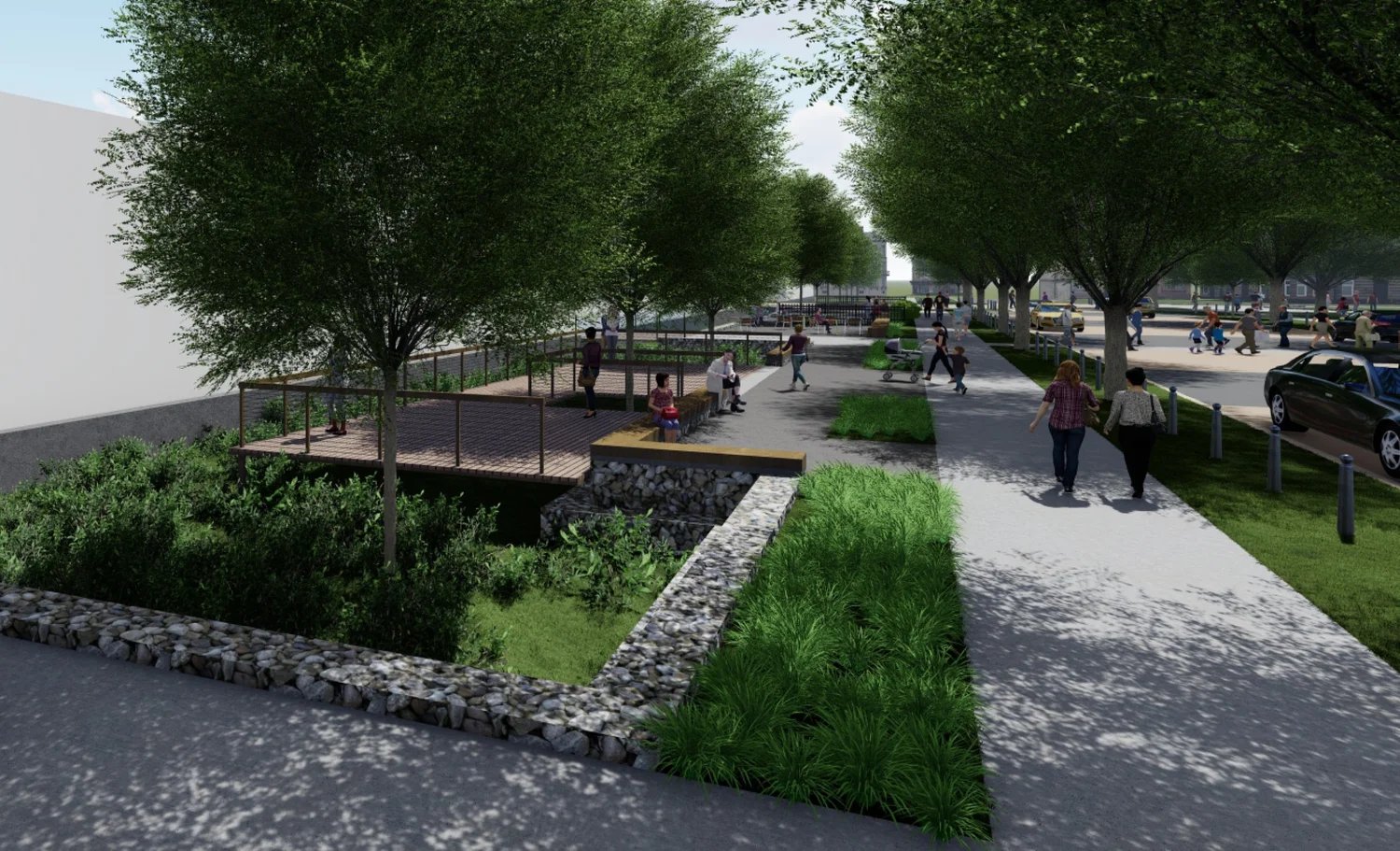 Áp dụng cách tiếp cận sáng tạo để quản lý nước mưa, MKSK đã thiết kế lại mạng lưới công viên trên đất liền và không gian xanh hiện có để truyền tải lượng nước mưa gấp năm lần so với các cơn bão hiện tại. MKSK đã hỗ trợ nỗ lực quy hoạch bằng cách xác định các loại hình Quyền ưu tiên công cộng và đường phố, đóng vai trò như các đặc điểm cảnh quan để cộng đồng tụ tập, vui chơi và sử dụng thụ động. Những không gian này cung cấp đầy đủ các lợi ích cơ sở hạ tầng xanh, bao gồm hấp thụ carbon, tăng giá trị môi trường sống, cải thiện chất lượng không khí và nâng cao giá trị thẩm mỹ. Trong suốt thời gian 16 tháng của dự án, MKSK đã hỗ trợ trình bày các khái niệm cho các cơ quan công quyền, các bên liên quan và cộng đồng Tây Nam rộng lớn hơn.