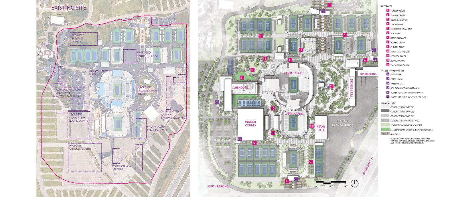 Là giải quần vợt lâu đời nhất trong nước vẫn diễn ra ở thành phố ban đầu, Cincinnati Open—trước đây gọi là Western & Southern Open—đang đầu tư gần 260 triệu đô la vào những cải tiến trên toàn khuôn viên trường để nâng cao trải nghiệm chung của người hâm mộ. Trong khi các nhà điều hành giải đấu trước đây đã lập trình và kích hoạt khuôn viên với các nhà cung cấp thực phẩm, đồ uống và hàng hóa thì phần lớn cảnh quan khuôn viên hiện tại bao gồm nhựa đường không thấm nước hấp thụ nhiệt với số lượng cây trồng tối thiểu. Diễn ra giữa các sự kiện giải đấu năm 2024 và 2025, trải nghiệm dành cho người hâm mộ được hình dung lại bao gồm những nâng cấp đáng kể đối với sân vận động và trải nghiệm chỗ ngồi cũng như những cải tiến đáng kể về cảnh quan hiện có và không gian ngoài trời mới. Hợp tác chặt chẽ với nhóm thiết kế đa ngành do Gensler đứng đầu, MKSK đóng vai trò là Người lập kế hoạch địa điểm và Kiến trúc sư cảnh quan để hình dung lại toàn bộ khuôn viên, mở rộng trải nghiệm của người hâm mộ ra ngoài các sân vận động quần vợt.