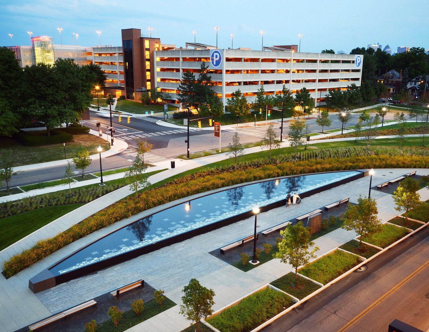 Được giao nhiệm vụ di dời công viên đến một không gian trống trước đây trong khuôn viên Trung tâm Y tế, MKSK/OLIN đã giữ vững địa điểm mới bằng cách tạo ra Đài phun nước Donor dài 175 foot ấn tượng. Hồ phản chiếu hình lưỡi liềm của đài phun nước có 1.515 viên gạch thủy tinh được khắc các tác phẩm nghệ thuật từ gạch men của công viên cũ. Một nhóm nghệ sĩ đã chụp ảnh riêng lẻ và truy tìm kỹ thuật số từng viên gạch để duy trì chất lượng làm bằng tay của tác phẩm gốc. Những viên gạch kính được đặt như thể “nổi” trong hồ phản chiếu.