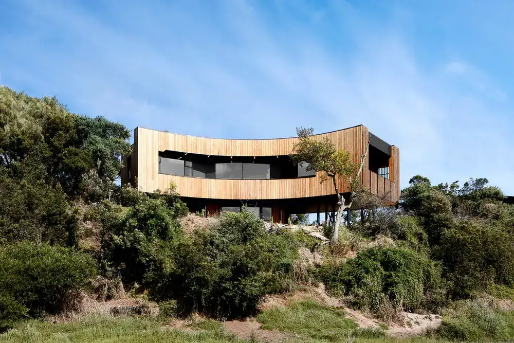 Ẩn nhà là nơi nghỉ dưỡng xa Melbourne, nơi chủ sở hữu có thể dành nhiều thời gian hơn để sống và làm việc tại Vịnh Venus. Tuy nhiên, trong mùa hè và ngày lễ, ngôi nhà cần có chỗ ở thoải mái cho bạn bè và gia đình. Phòng ngủ dành cho khách, phòng ngủ và không gian sinh hoạt nằm ở tầng dưới trong khi tầng trên bao gồm không gian sinh hoạt chính và phòng ngủ của chủ sở hữu. Hình thức điêu khắc của ngôi nhà được tạo ra bằng cách tập hợp một tầng cong phía trên được đặt trên và trên một khối thẳng phía dưới.