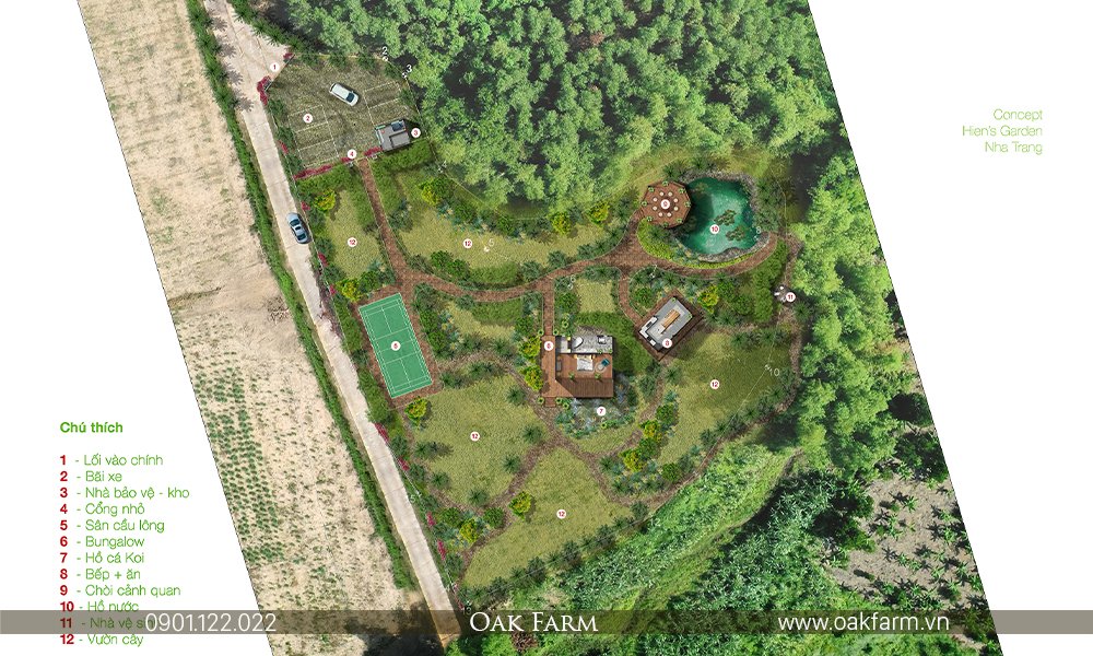Farmhome ở Nha Trang, với diện tích vừa phải 2000m2, phù hợp với định hướng sử dụng làm nơi nghỉ dưỡng cuối tuần cho gia đình.