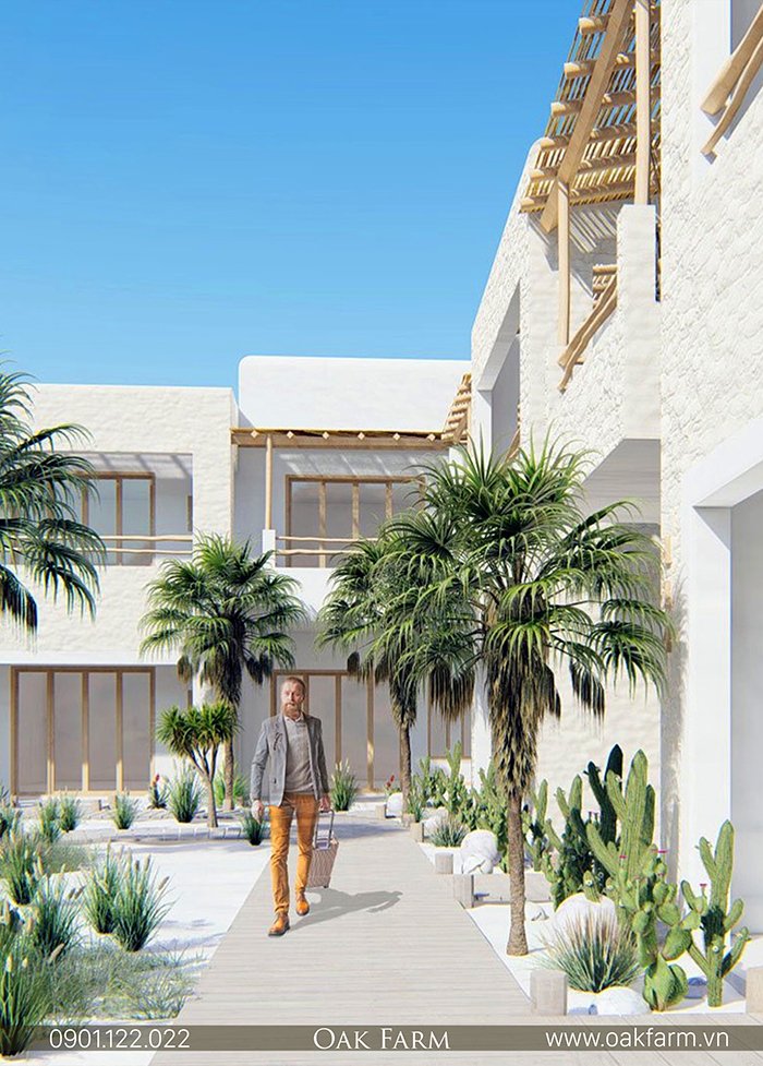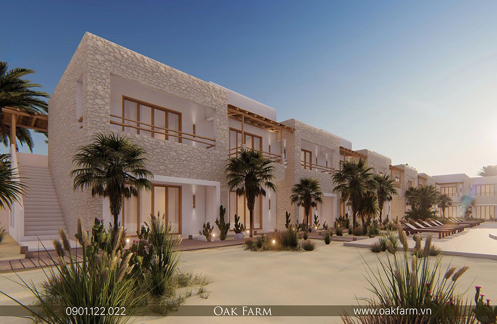 Oak Farm xin giới thiệu dự án thiết kế trọn gói tổ hợp khách sạn Palm Hotel theo phong cách Địa Trung Hải tại Bà Rịa – Vũng Tàu. Dự án đã được thiết kế hoàn thiện chi tiết từ tổng thể đến kiến trúc và nội thất.