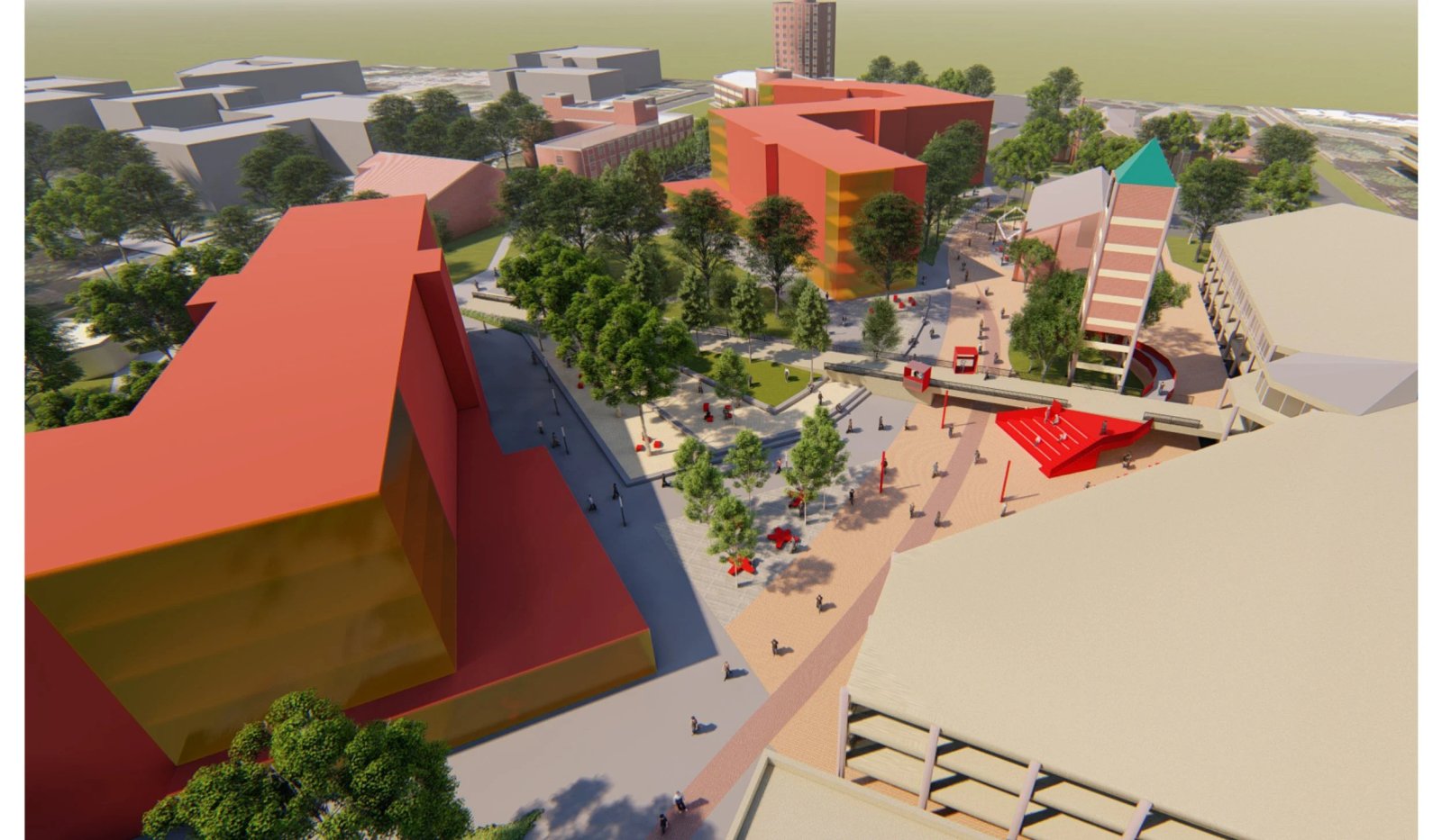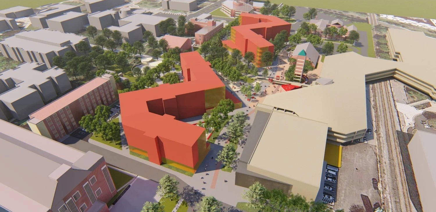 Quá trình quy hoạch đã dẫn đến cấu hình tòa nhà “Zig-Zag” nhằm định hình và nâng cao không gian mở trong khuôn viên trường hiện có, đồng thời cung cấp không gian mới cho sinh viên tái tạo, học tập, giao lưu và tận hưởng cảnh quan trong khuôn viên trường. Sơ đồ quy hoạch đề xuất một loạt các phòng ngoài trời không chỉ có mối quan hệ trực tiếp với khuôn viên hiện tại mà còn mở rộng chương trình nội thất của tòa nhà ra ngoài khuôn viên, tạo ra mối quan hệ liền mạch về hình ảnh và vật lý.
