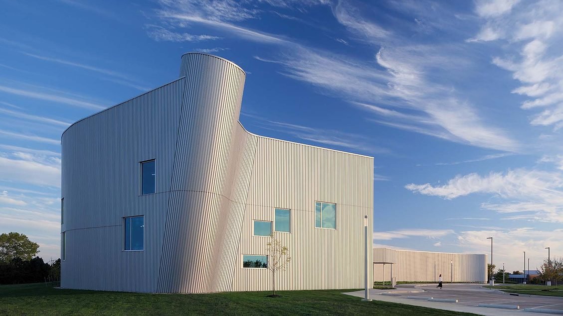 Nếu nội thất là một hội thảo kiến trúc để nghiên cứu Kinh Torah, bề ngoài là một bài học về hình học. Được bọc trong vách ngoài mạ kẽm dạng sóng, theo Cohen, “gợi nhớ đến các cấu trúc nông nghiệp mà bạn có thể thấy ở Kansas”, các dạng cuộn đạt được bằng cách uốn vật liệu thống trị dọc theo thớ của nó. Kết quả là các đường cong lõm và lồi của tòa nhà, mỗi đường được tạo thành như một bề mặt có thể phát triển, nối với nhau sao cho các rãnh của kim loại thẳng hàng và làm cho các hình dạng riêng biệt trở nên dễ đọc. Cohen lưu ý: “Tòa nhà liên tục một cách trơn tru, nhưng do hình học của nó, những đường này giữa các phần của tấm ốp khắc họa một tổ chức khác vào kiến trúc.”