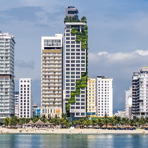 Công trình M Garden City Hotel được thiết kế 25 tầng và 2 hầm, có diện tích đất gần 1.200 m2, tọa lạc tại một khu trung tâm các dự án cao tầng ven biển. Phía trước hướng Đông gíap trục đường biển Võ Nguyên Giáp với lộ giới 43m, Phía sau hướng Tây nhìn về trung tâm thành phố giáp đường quy hoạch có lộ giới 13,5m, hai mặt còn lại giáp với 2 dự án khách sạn quy mô tương đương.