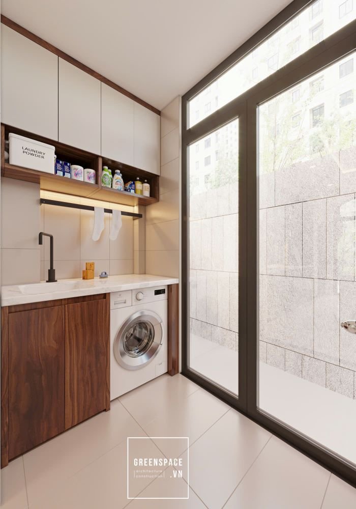 Sự kết hợp hoàn hảo giữa tính thẩm mỹ và công năng. Nội thất đơn giản nhưng tinh tế, sử dụng nhiều vật liệu tự nhiên như gỗ, len, đá. Màu chủ đạo là trắng, xám nhạt, giúp không gian sáng sủa, thoáng đãng.