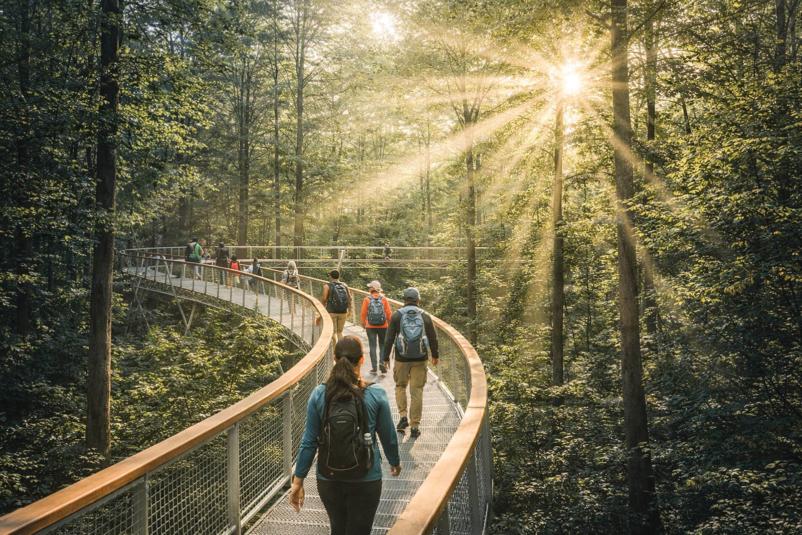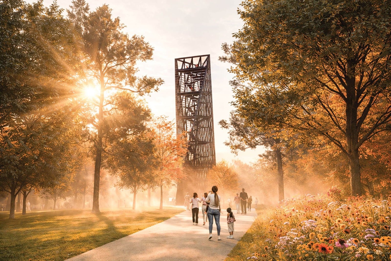 “Quy hoạch tổng thể xác định bản sắc của công viên, trong khi kiến trúc tạo ra những cách đặc biệt để trải nghiệm khu rừng—thông báo những thời điểm quan trọng khi đến, khám phá và những chỗ đậu trên cây cao,” Kudo-King tiếp tục.