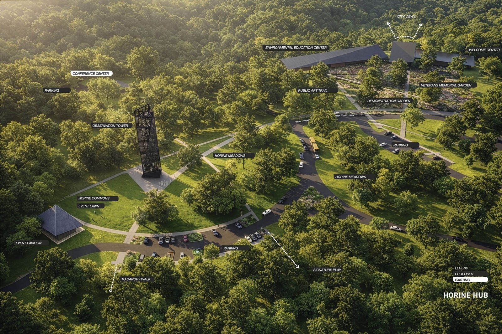 Horine Pavilion do Olson Kundig thiết kế sẽ tổ chức các sự kiện, hoạt động giải trí và biểu diễn. Cấu trúc này sẽ liền kề với Trung tâm Giáo dục Môi trường mới, cũng của Olson Kundig. Các cấu trúc được thiết kế để tạo tiếng vang cho môi trường xanh tươi xung quanh và sẽ được phủ bằng “vật liệu tự nhiên, bền bỉ”.