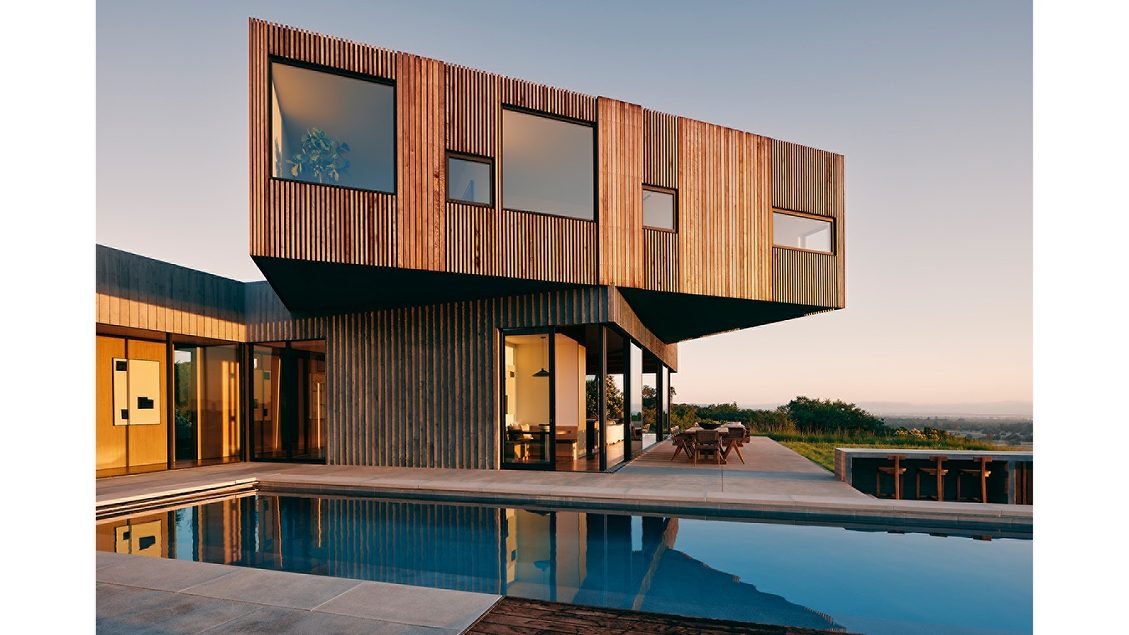 Giải pháp thiết kế: Các hộp lồng vào nhau tổ chức chương trình, xoắn lên trên trong khi bám vào cảnh quan và nhìn ra vịnh. Ngôi nhà chính phần lớn bị che khuất khi đến nơi, nhưng nó dần dần hiện ra khi du khách bước vào khu vực này. Các hình dạng trực giao được xoay để tạo ra tầm nhìn, tạo sân trong, che chắn khỏi ánh nắng mặt trời và mang lại sự tiếp xúc thay đổi với ánh sáng và cảnh quan.
