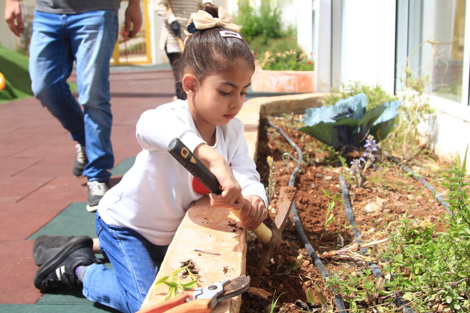 Majd Salsa là giảng viên môi trường của Trường mẫu giáo Zahrat Al-Yasmeen. Các luống trồng bên trong sân chơi trồng súp lơ, bông cải xanh, đậu, dâu tây, dưa chuột, cà chua và các loại cây trồng khác tùy theo mùa. Học sinh được làm quen với các hoạt động nông nghiệp ngay từ khi còn nhỏ, như một phần sứ mệnh của Trung tâm Lajee.