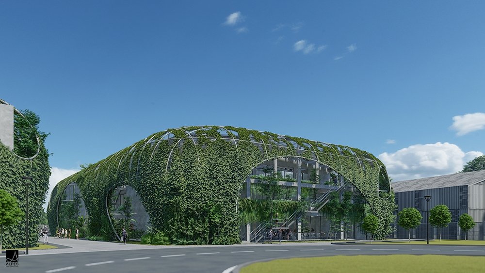 Nguồn cảm hứng cho ý tưởng thiết kế đến từ tên gọi của công ty “Hành tinh xanh”. Công trình là khối nhà 3 tầng với tổng diện tích sàn hơn 6.000 m2, được bao phủ kín bởi một hệ khung vòm cây Xanh, tạo ra một tòa nhà Xanh trong khu công nghiệp vốn dĩ thường đơn điệu, khô cứng.