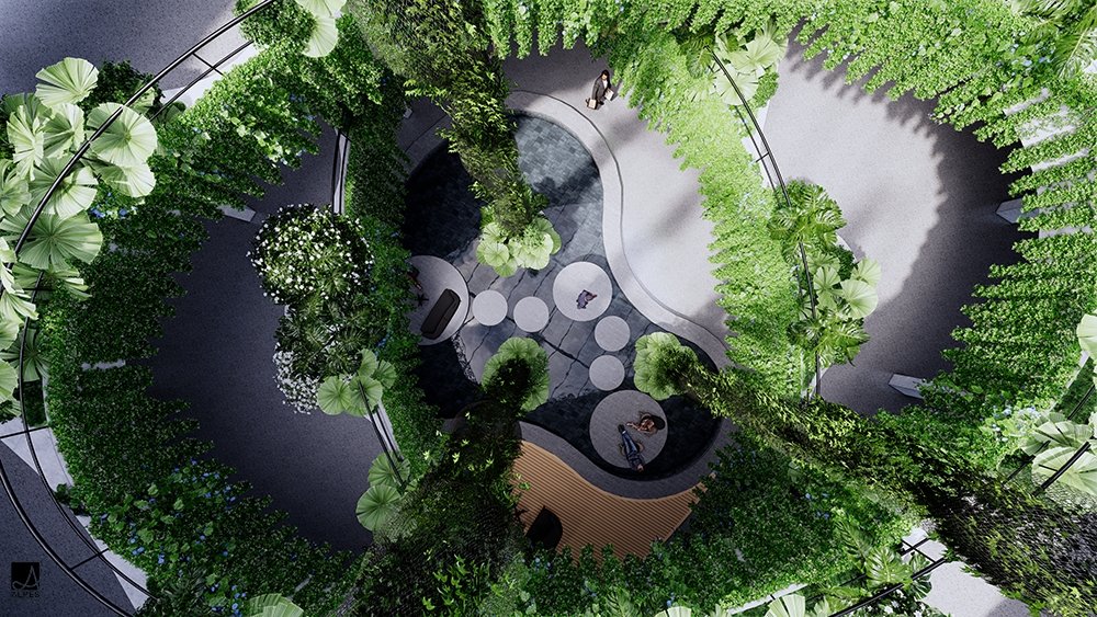Điểm nhấn bên trong công trình đến từ lõi không gian thông tầng được thiết kế chính giữa Nhà ăn. Các thảm thực vật tầng lớp, mặt nước hồ cá tại tầng một và “chiếc áo khoác” cây xanh bao phủ tòa nhà giúp cho công nhân như đang được nghỉ ngơi trong một khu resort vườn nhiệt đới. Ngoài ra, “chiếc áo khoác” cây Xanh còn bảo vệ cho công trình giảm được bức xạ nhiệt của nắng nóng mặt trời.