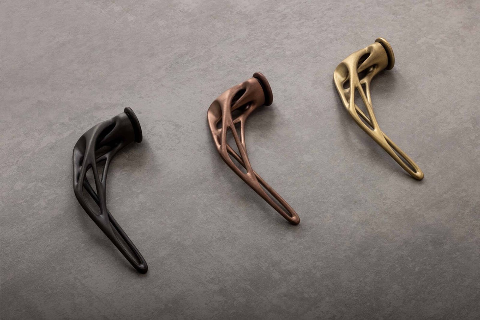JNF hợp tác với nhà thiết kế Ross Lovegrove để in 3D phần cứng kim loại mảnh có hình dạng vừa mang tính tương lai vừa lấy cảm hứng từ vật chất hữu cơ.
