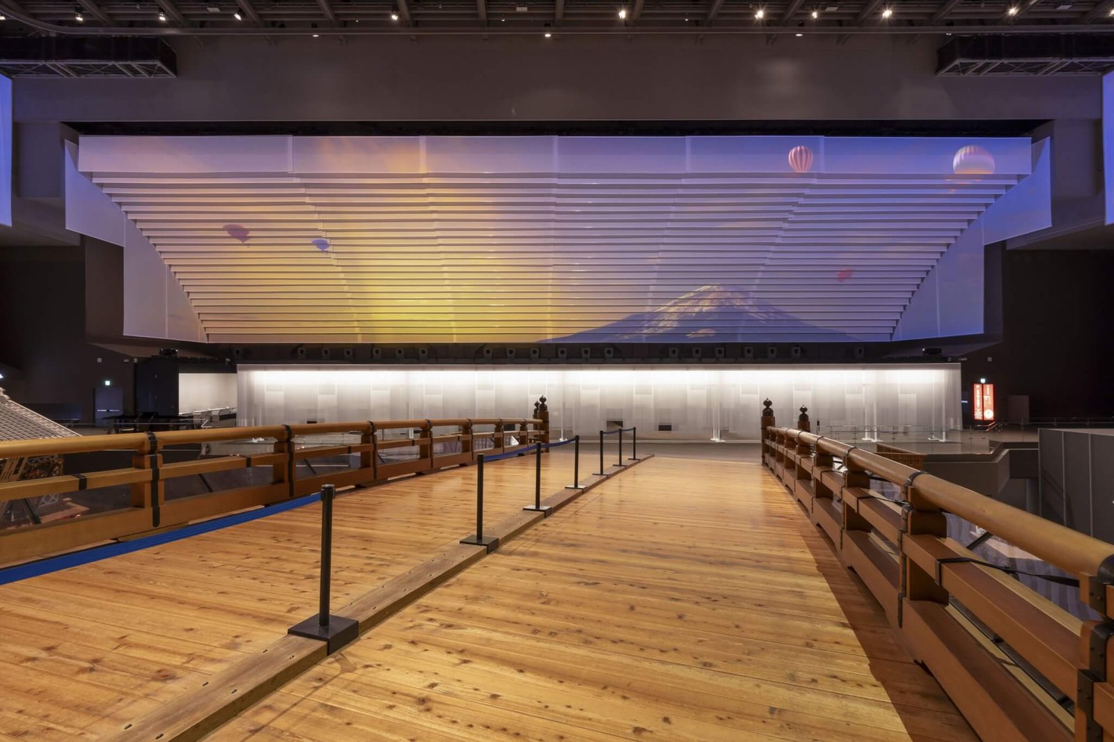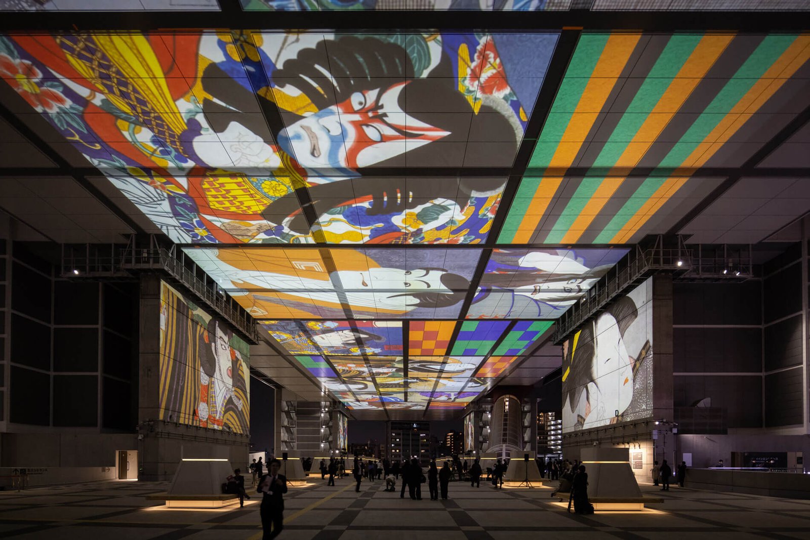 Những hình ảnh chuyển động mô tả hoa văn, hoa và chữ viết truyền thống của Nhật Bản—tất cả đều được lấy từ các đồ vật trong bộ sưu tập của Bảo tàng Edo-Tokyo—cũng như các cảnh từ thời Edo và cuộc sống đô thị hiện đại được chiếu lên trần của một quảng trường ngoài trời rộng lớn và hoa phi công.