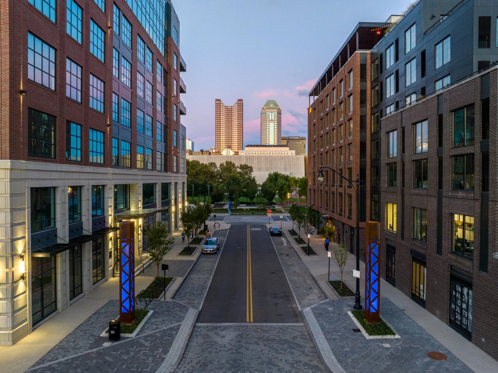 MKSK đã làm việc với Downtown Columbus Inc. để phát triển một kế hoạch thiết kế đô thị mang tính khái niệm nhằm hướng dẫn các nhóm Nhà phát triển trong giai đoạn đầu tiên tái phát triển sáu mẫu đất trên Bán đảo Scioto, trong khu phố Đông Franklinton liền kề với Công viên xanh Dorrian mới, Bảo tàng Khoa học COSI và Đài tưởng niệm và Bảo tàng Cựu chiến binh Quốc gia. Kế hoạch này là tầm nhìn về các đường phố công cộng và tư nhân cũng như các không gian công cộng trong các khu phát triển tư nhân. Việc phát triển khu phức hợp đòi hỏi sự kết hợp giữa các mục đích sử dụng tòa nhà bao gồm khu dân cư (11 tầng), văn phòng (tám tầng), khách sạn (tám tầng), khu bán lẻ và nhà để xe (1400 chỗ). Giai đoạn đầu tiên bao gồm khoảng 240.000 feet vuông không gian văn phòng, 550 đơn vị dân cư, 180 phòng khách sạn và khu bán lẻ trên đường phố.