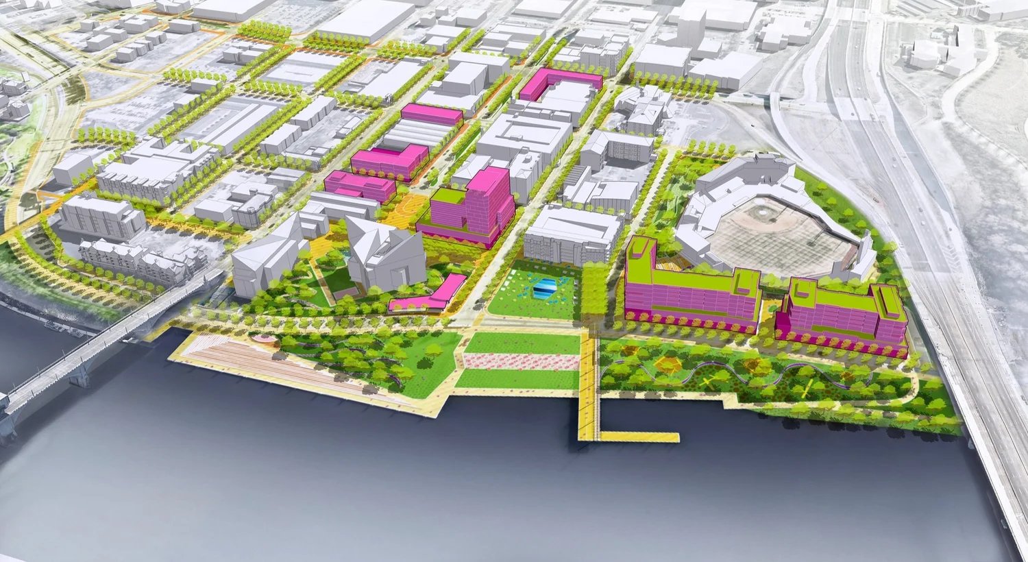 Sau nhiều tháng lập kế hoạch giữa Công ty River City, Thành phố Chattanooga, Quỹ Benwood, Quỹ Lyndhurst, MKSK và hàng nghìn thành viên cộng đồng, đã phát triển Quy hoạch tổng thể ONE Riverfront District – một kế hoạch hướng tới cộng đồng xác định 4 Khát vọng và 8 Chiến lược để biến đổi bờ sông trong vòng 7 đến 10 năm tới. Kế hoạch ONE Riverfront giải quyết những thách thức hiện tại, với các chiến lược ngắn hạn và dài hạn cho cơ sở hạ tầng cũ, đường một chế độ và phục vụ tốt hơn cho khách du lịch, du khách và người dùng địa phương.