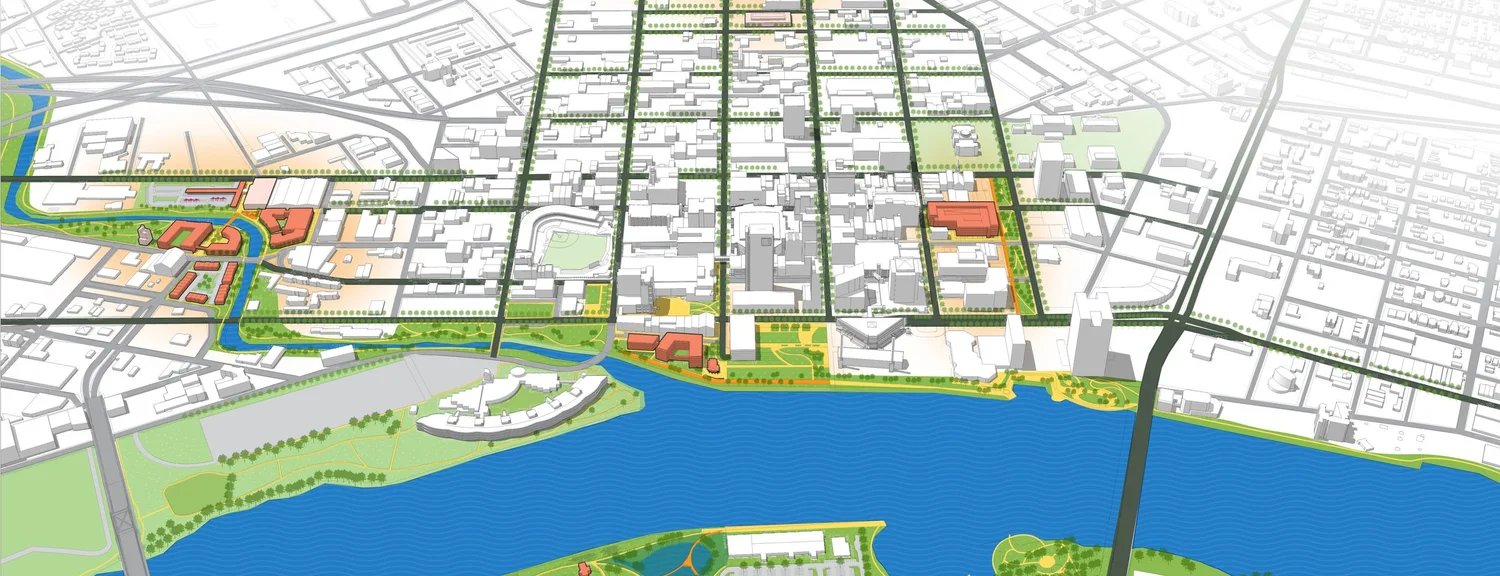 Bờ sông: Vị trí chưa phát triển cuối cùng dọc theo bờ sông mang lại tiềm năng phát triển trong tương lai, tận dụng những cải tiến hiện có đối với Riverwalk và cảnh quan đường phố.