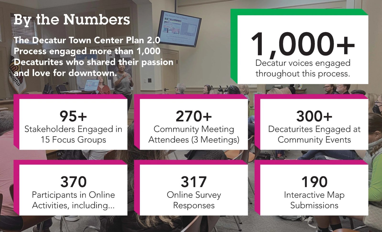 Nhóm MKSK đã hợp tác với cộng đồng Decatur để hiểu về Downtown Decatur và phát triển một khuôn khổ chiến lược cho sự thành công liên tục của trung tâm thành phố. Thông qua nhiều hình thức tham gia trực tiếp, phi truyền thống và trực tuyến cũng như ba hội thảo cộng đồng, hơn 1.000 tiếng nói của Decatur đã tham gia vào Kế hoạch Trung tâm Thị trấn 2.0. Các khái niệm và khuyến nghị của kế hoạch được sắp xếp thông qua bảy tuyên bố về Mục tiêu hướng dẫn việc tạo ra 23 Mục tiêu và 34 Mục hành động.