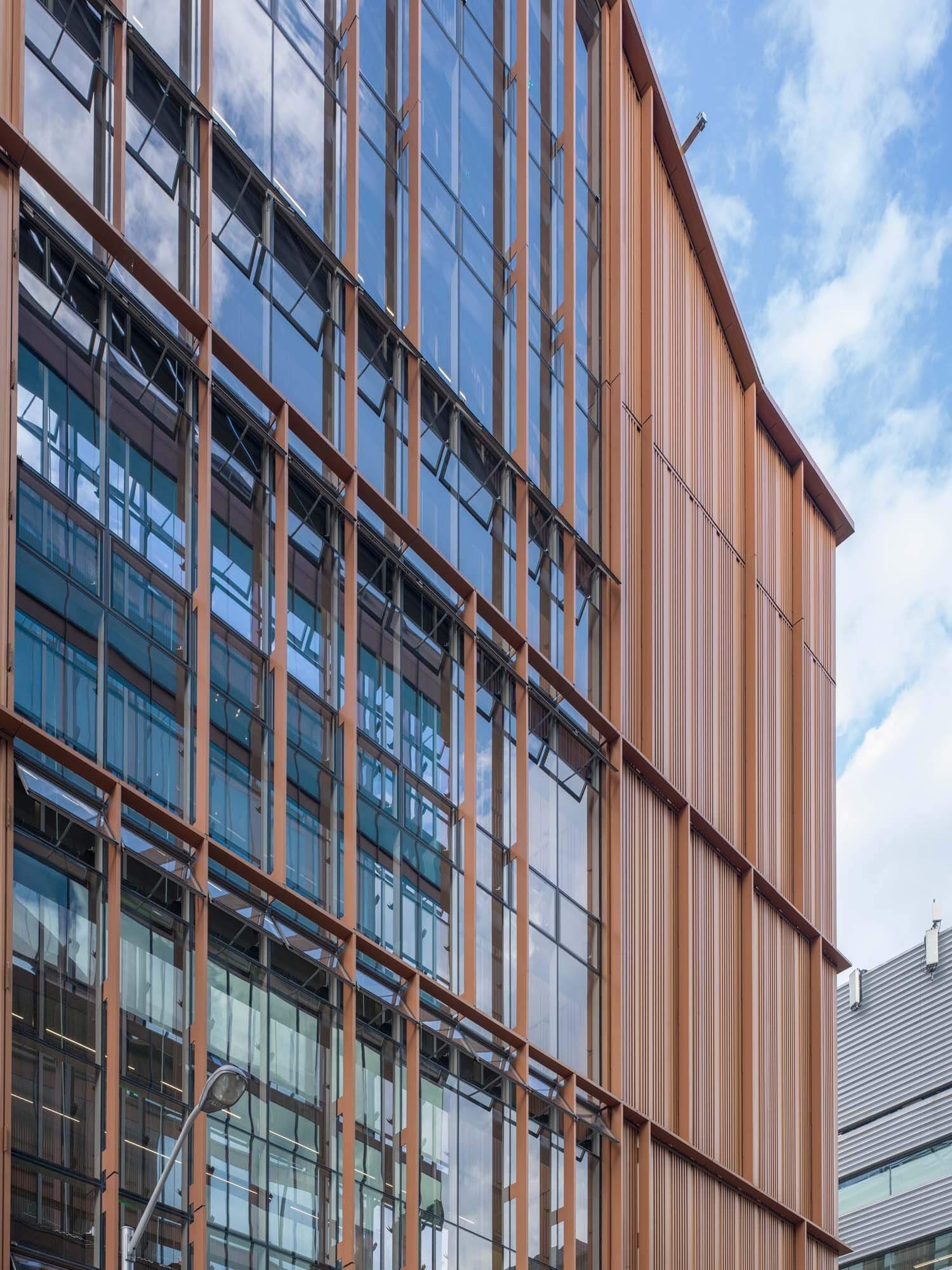 Hệ thống mặt tiền cửa hàng này đạt được tính thẩm mỹ cho bức tường rèm bằng cách sử dụng BetterBillet của YKK, bao gồm trung bình 40% nhôm tái chế kết hợp với nhôm nguyên chất có hàm lượng carbon thấp.