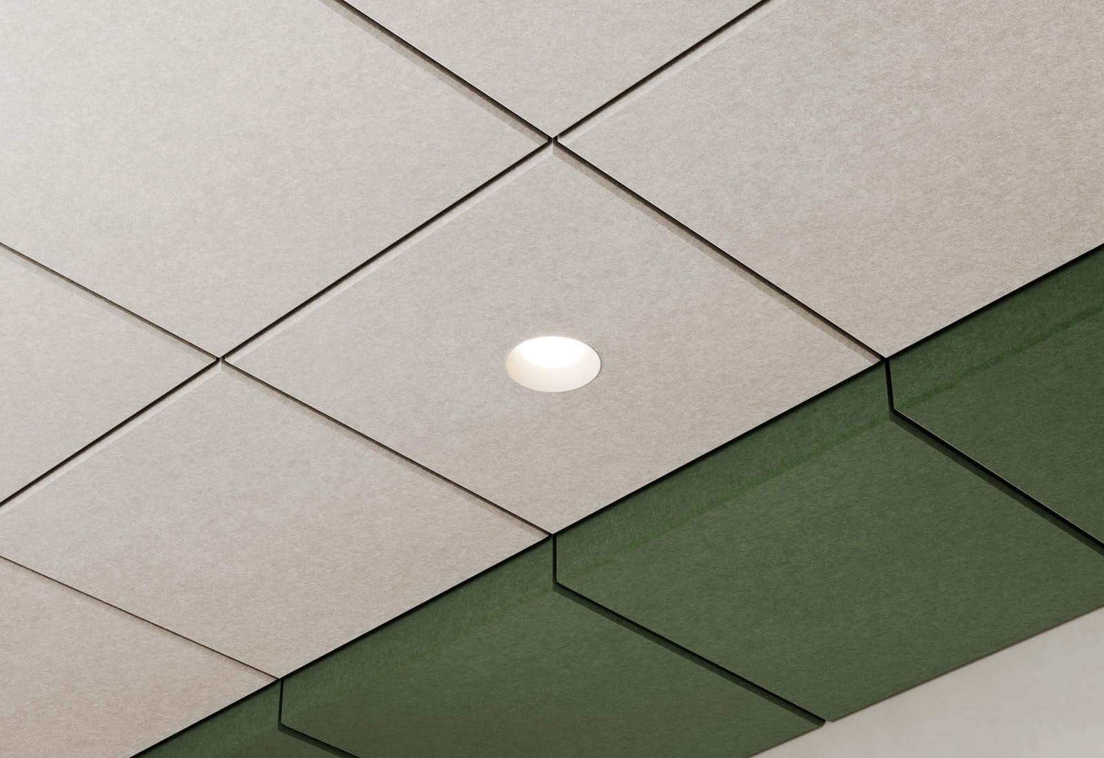 Được làm bằng nỉ polyester tái chế 60% đã qua sử dụng, Step là tấm ốp cách âm kiến ​​trúc tích hợp các thiết bị chiếu sáng để tăng cường chức năng.