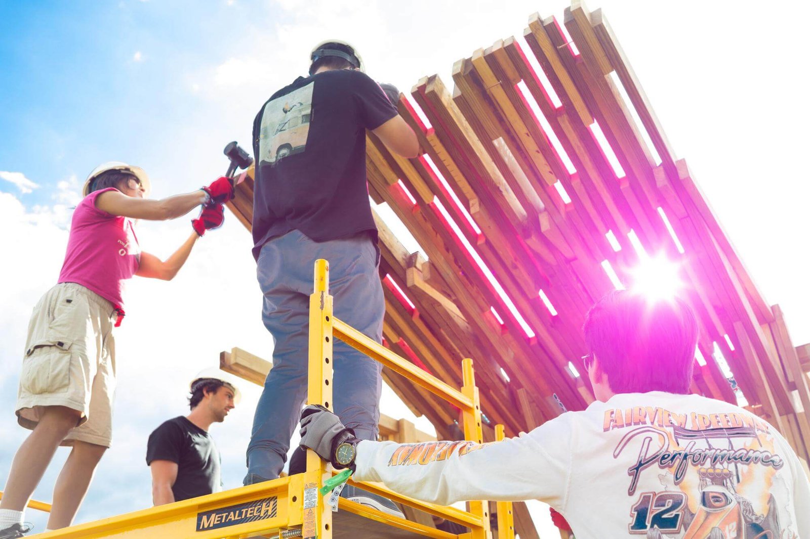 Sinh viên xây dựng công trình bằng gỗ tại cuộc thi kiến ​​trúc