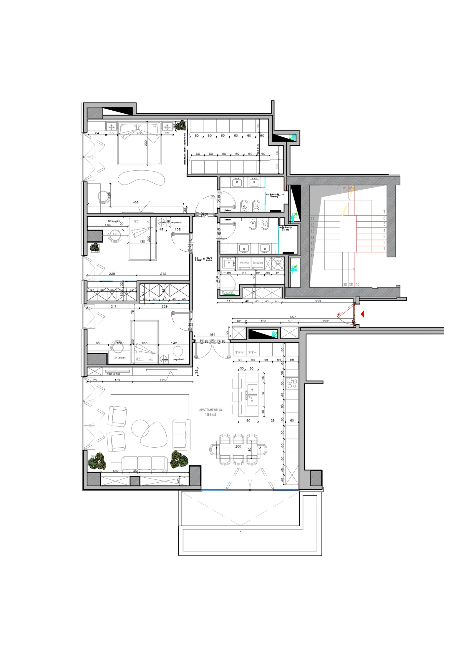 Nằm ở trung tâm khu dân cư danh giá nhất Tirana, Rừng thẳng đứng, căn hộ rộng 180 m2 này thể hiện sự kết hợp hoàn hảo giữa kiến ​​trúc hiện đại, thiết kế bền vững và sự sang trọng của đô thị. Dự án nhấn mạnh sự hài hòa giữa thiên nhiên và cuộc sống thành phố, với từng chi tiết được thiết kế để mang lại sự thoải mái, sang trọng và cân bằng môi trường. Căn hộ có nội thất rộng rãi với cửa sổ kính suốt từ trần đến sàn giúp các phòng tràn ngập ánh sáng tự nhiên, cho tầm nhìn toàn cảnh Tirana