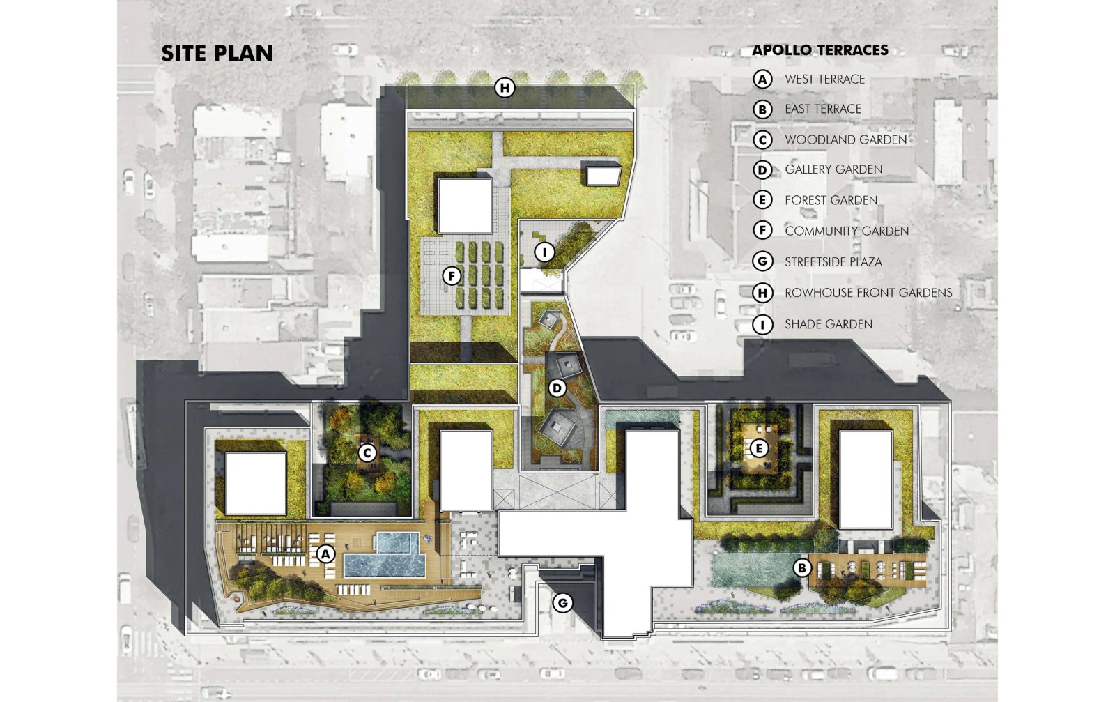 Apollo là một tòa nhà bán lẻ và căn hộ cao 8 tầng gồm 435 căn ở Hành lang Phố H của Washington DC, một khu phố đang phát triển gần Ga Union. Diện tích tương đối lớn của tòa nhà mang đến cơ hội tạo ra nhiều không gian ngoài trời đa dạng bao gồm sân hiên có hồ bơi lớn, sân nướng và sân cỏ ngoài trời rộng rãi, đường chạy cho chó, khu vườn cộng đồng, bốn sân ngoài trời nhỏ hơn, khu vườn đi bộ cho một số căn hộ ở tầng trệt, cảnh quan đường phố công cộng và sân ăn uống công cộng có liên quan.