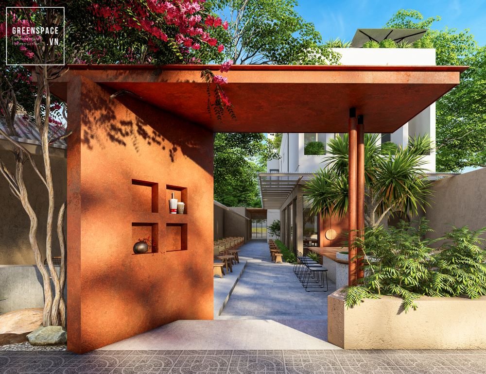 Homestay – cafe mang phong cách hiện đại và gần gũi thiên nhiên. Không gian sử dụng gam màu ấm và tự nhiên. Mặt tiền nổi bật với cây hoa giấy rực rỡ. Thiết kế mở, nhiều ánh sáng chan hòa. Khu vực cafe rộng rãi, thoáng mát. Nội thất tối giản nhưng tinh tế và tiện nghi. Các chi tiết trang trí mộc mạc, gần gũi. Cây xanh được bố trí khắp không gian. Khu homestay và cafe liên kết hài hòa. Không gian tạo cảm giác thư giãn và dễ chịu. Đây là điểm check-in hấp dẫn tại Vũng Tàu. Phong cách thiết kế hiện đại nhưng vẫn giữ nét truyền thống. Homestay hứa hẹn mang lại trải nghiệm nghỉ dưỡng độc đáo.