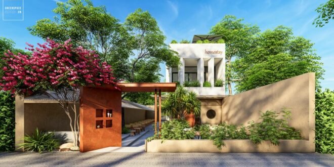 Homestay – cafe mang phong cách hiện đại và gần gũi thiên nhiên. Không gian sử dụng gam màu ấm và tự nhiên. Mặt tiền nổi bật với cây hoa giấy rực rỡ. Thiết kế mở, nhiều ánh sáng chan hòa. Khu vực cafe rộng rãi, thoáng mát. Nội thất tối giản nhưng tinh tế và tiện nghi. Các chi tiết trang trí mộc mạc, gần gũi. Cây xanh được bố trí khắp không gian. Khu homestay và cafe liên kết hài hòa. Không gian tạo cảm giác thư giãn và dễ chịu. Đây là điểm check-in hấp dẫn tại Vũng Tàu. Phong cách thiết kế hiện đại nhưng vẫn giữ nét truyền thống. Homestay hứa hẹn mang lại trải nghiệm nghỉ dưỡng độc đáo.