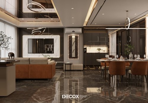 Căn hộ 2 phòng ngủ tại dự án The Ascentia được Decox Design lựa chọn thiết kế theo phong cách Hiện đại kết hợp Luxury cao cấp. Vẻ đẹp tổ ấm lấy chủ trương từ sự đỉnh đạt và phóng khoáng trong tính cách của gia chủ. Thoạt nhìn, vẻ lịch lãm, sang trọng và mực thước dường như đã bao trùm toàn bộ không gian sống. Thiết kế nội thất đề cao tính cá nhân hóa thông qua sự chọn lựa, kết hợp các yếu tố chất liệu, màu sắc và xây dựng bố cục không gian. Cụ thể, các tone màu trầm đen – nâu – xám – trắng được phối trộn để làm nổi bật cá tính thời thượng của căn hộ. Sự sang trọng ở đây sẽ được định nghĩa từ chất liệu hàn tính và những món đồ nội thất cao cấp, có đường nét khỏe khoắn, hiện đại.