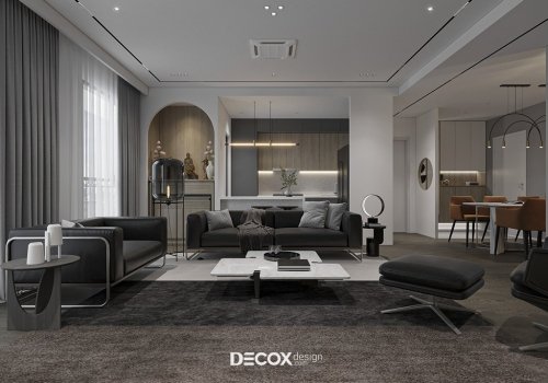Đến với dự án chung cư The Emerald CT8 Mỹ Đình rộng 124m2, Decox Design đã chọn lựa thiết kế nội thất hướng theo tinh thần hiện đại thời thượng đảm bảo về mặt thẩm mỹ lẫn công năng cho người sử dụng. Về tổng thể, căn hộ gây được ấn tượng mạnh bởi sự khéo léo trong cách phối trộn màu sắc. Sự xuất hiện đồng thời của cặp màu tương phản trắng và đen không chỉ tạo hiệu ứng kích thích thị giác mà còn bổ trợ chặt chẽ, nâng đỡ nhau tỏa sáng trên nền tường xám nền nã. Ngoài ra, cách bố trí nội thất “vừa đủ” giúp không gian không bị trống trải nhưng đồng thời vẫn tạo được sự rộng rãi, thoải mái cho việc di chuyển cũng như sinh hoạt của các thành viên trong gia đình cũng là một điểm sáng trong dự án này.