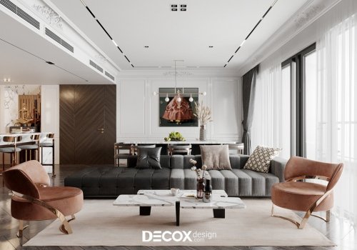 Căn hộ tại dự án The Estella – Quận 2 được thiết kế nội thất chung cư theo phong cách Bán cổ điển. Gỗ và đá được sử dụng rất nhiều trong nội thất của căn hộ này làm cho không gian thể hiện được chất sang trọng của phong cách này. Hơn nữa, “chất liệu” là một trong những yếu tố quan trọng quyết định nên sự thành công trong một công trình, Decox Design tin rằng những chất liệu khác nhau sẽ cho chúng ta có những cảm nhận khác nhau, để mỗi căn nhà đều có thể kể nên “câu chuyện” của riêng mình.