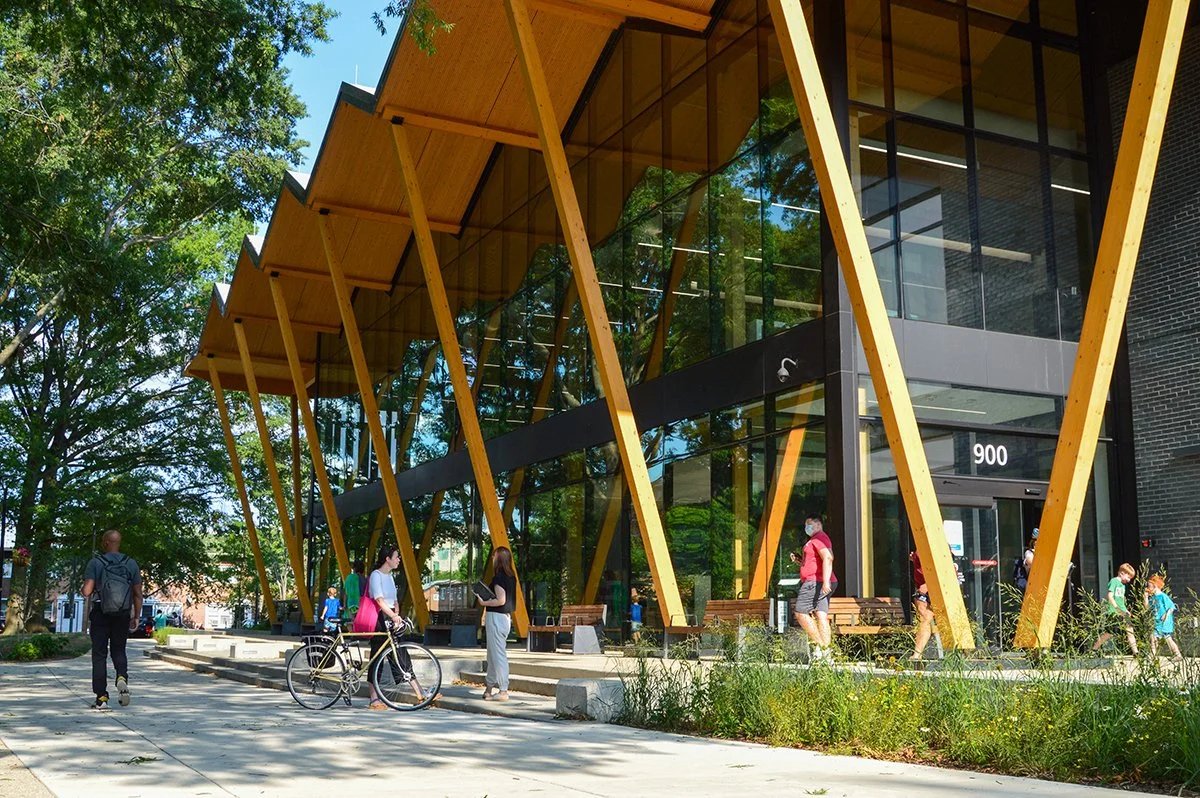 Khi dự án tiến triển, nhóm thiết kế đã làm việc với DC DPR để thực hiện một loạt các cải tiến hạn chế nhưng có tác động cao đối với Công viên số 3 và I St liền kề nhằm hợp nhất hai thực thể này thành một nơi mạch lạc. Phương pháp thiết kế mới đã mở thư viện cho công viên này bằng cách đặt lối vào chính ở góc tây bắc của tòa nhà và định hướng lại tòa nhà, cùng với sân hiên mới, về phía chính công viên. Rìa phía bắc của sân thượng được khớp nối thành một chuỗi dài các bậc thang vừa khuyến khích tiếp cận công viên vừa mang lại một ít tiềm năng – một nơi hoàn hảo để đọc sách, gặp gỡ và trò chuyện.