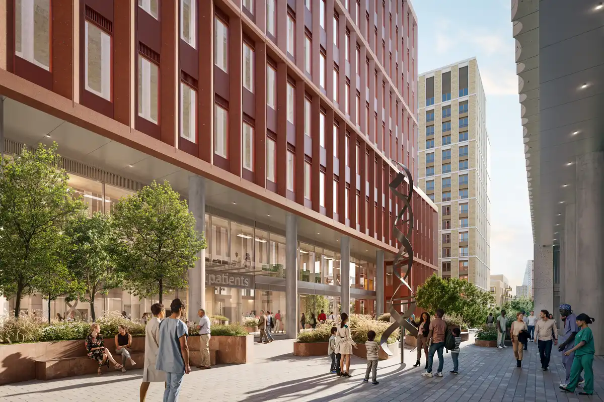 Cuối cùng, sự phát triển này có thể giải phóng thêm không gian cho The Royal London, một trong những bệnh viện bận rộn nhất thủ đô. Dự kiến ​​sẽ có một cơ sở mới rộng 64.427m2, được thiết kế bởi PLP Architecture. Bên cạnh các dịch vụ của khu vực công, tòa nhà này sẽ cung cấp không gian làm việc linh hoạt – 10% trong số đó có giá cả phải chăng – cho các công ty công nghệ y tế, chẩn đoán, AI và robot, thúc đẩy sự hợp tác giữa các bác sĩ lâm sàng, nhà nghiên cứu và nhà đổi mới khu vực tư nhân.