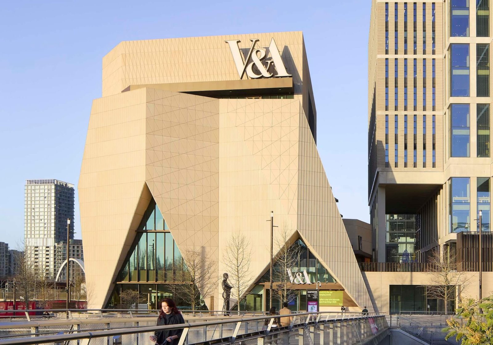 Jen McLachlan, giám đốc dự án tại V&A, cho biết Bảo tàng V&A East hướng tới “những người trẻ sống, làm việc và học tập ở Đông London trong bốn quận địa phương này”. Vì lý do đó, điều quan trọng là “nó thân thiện, lôi cuốn, xốp và điều đó đã được đề cập trong thiết kế”.