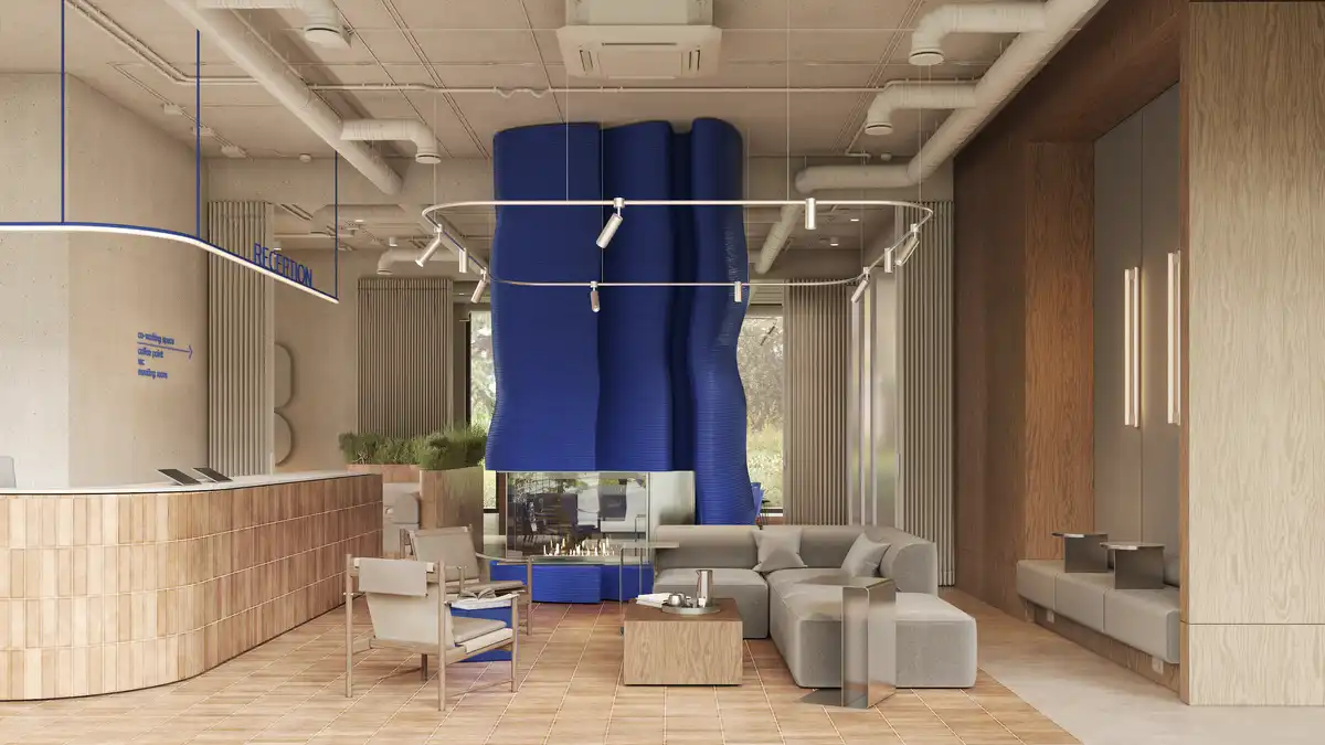 Tính linh hoạt và đa chức năng là cốt lõi của ý tưởng thiết kế. Cách bố trí nội thất được tổ chức để hỗ trợ quá trình chuyển đổi liên tục: các khu vực cộng tác mở có thể dễ dàng chuyển sang dạng sự kiện hoặc bài giảng, các phòng họp có quy mô khác nhau và các khu vực tiếp khách chuyển đổi liền mạch giữa công việc không chính thức và tương tác xã hội. Hệ thống nội thất mô-đun, vách ngăn di động và vách ngăn bằng vải mềm cho phép không gian thích ứng với các tình huống khác nhau trong ngày – từ công việc tập trung của cá nhân đến các cuộc tụ họp cộng đồng lớn.
