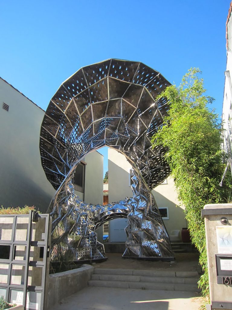 Một ví dụ sáng tạo về cấu trúc/hình thức kim loại nhiệt sinh học là công trình lắp đặt “Bloom” do giáo sư, kiến trúc sư Doris Kin Sung của USC thiết kế. Bản lắp ráp Bloom được đặt tại Phòng trưng bày Vật liệu và Ứng dụng ở Los Angeles, California. Phiên bản này được xây dựng bằng cách sử dụng 14.000 mảnh nhiệt sinh học được ghép lại với nhau và có dạng cuộn tròn khi sưởi ấm và dạng phản ứng tạo bóng râm và thông gió cho khu vực khi có nắng gắt.