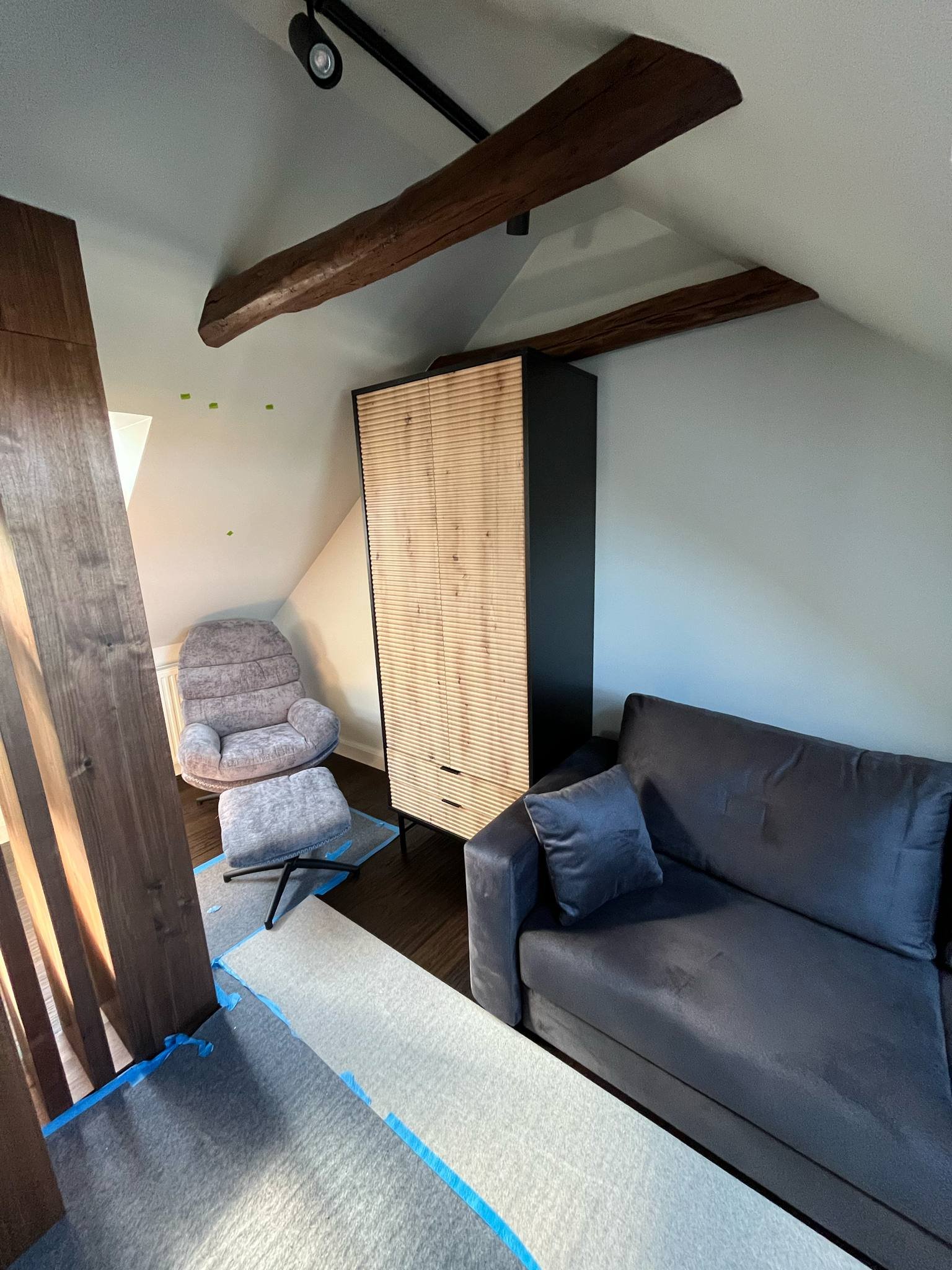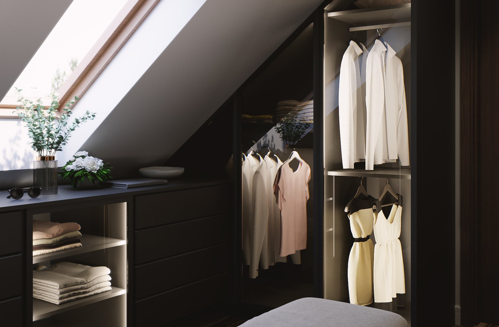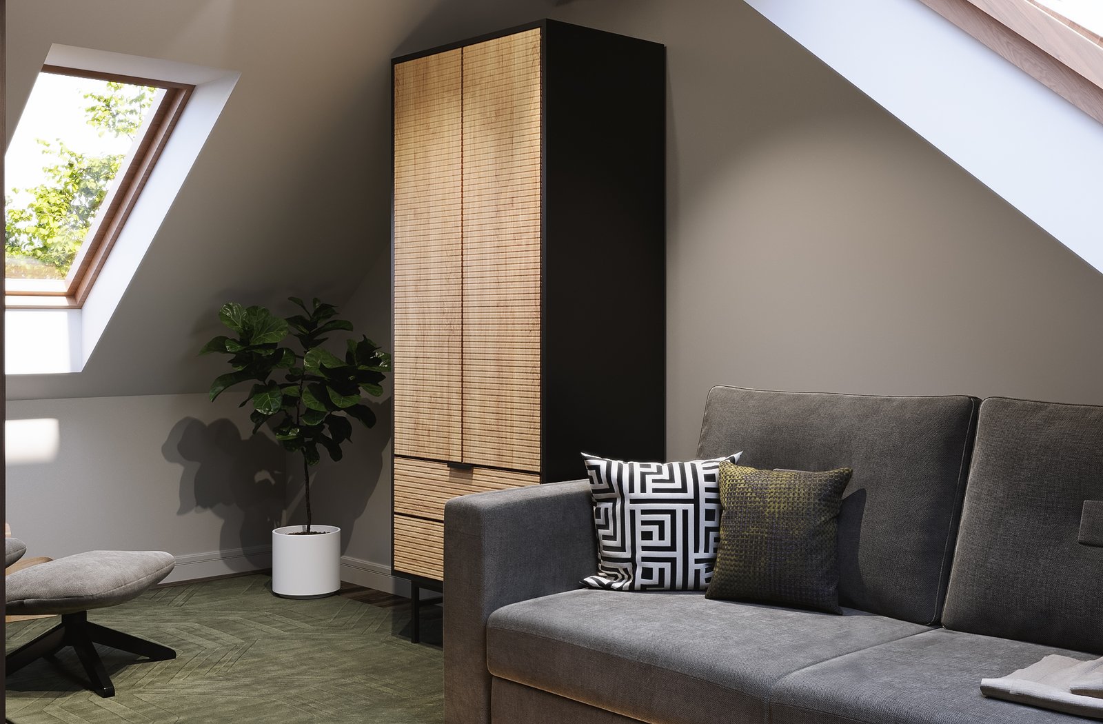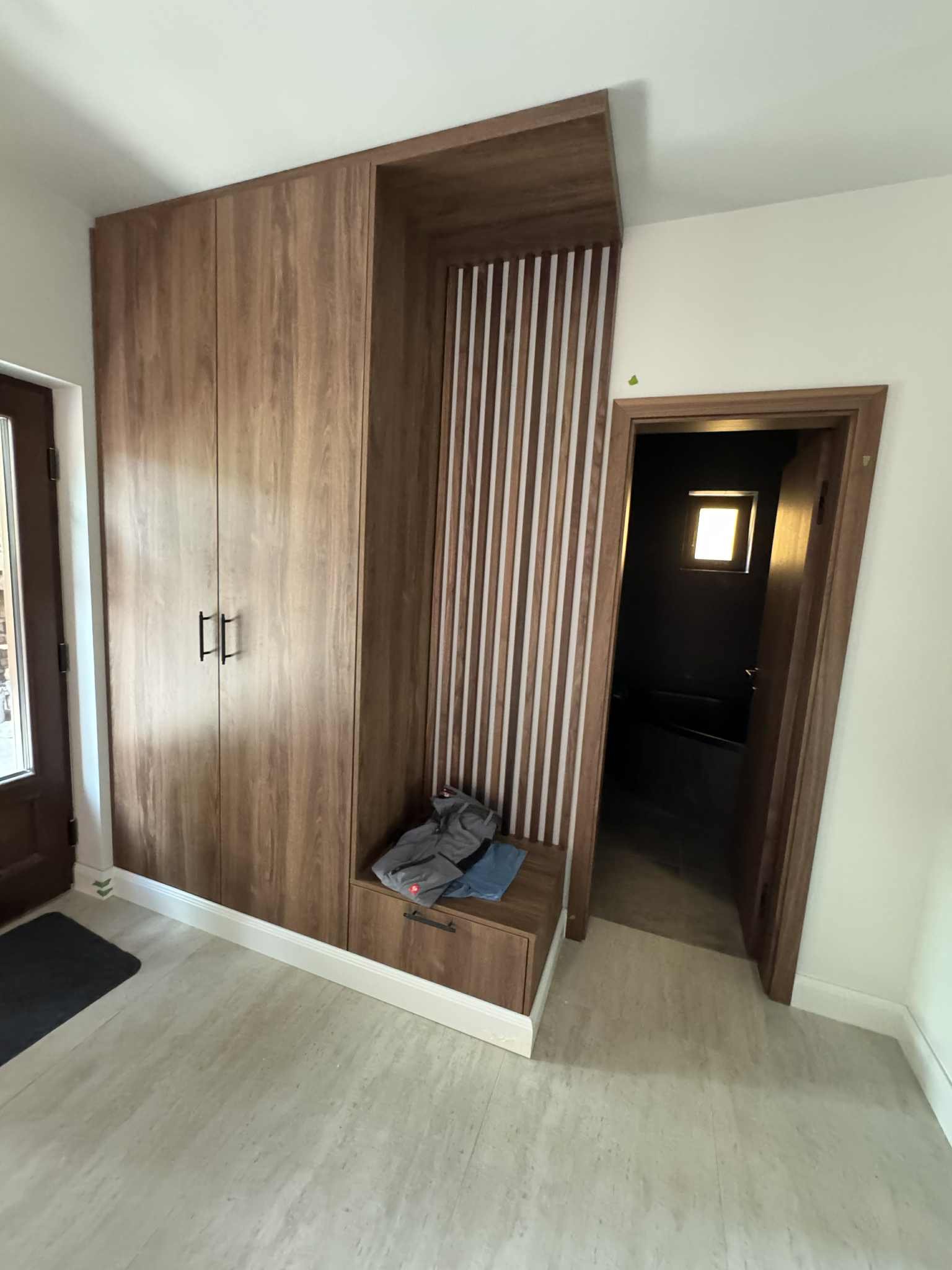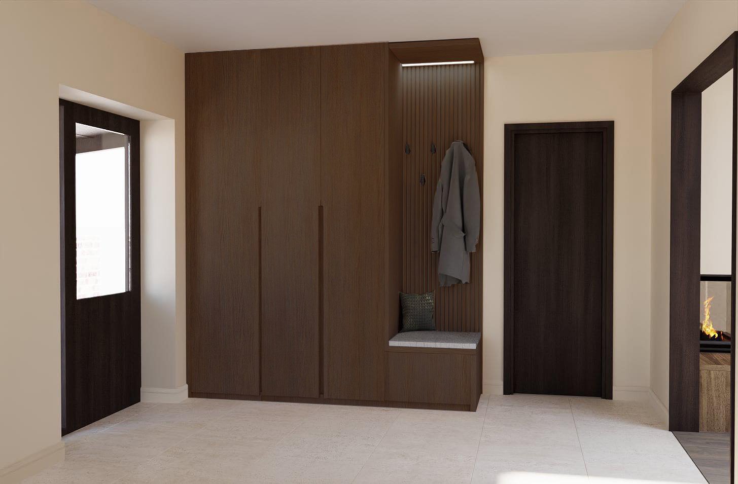 Tủ quần áo lớn được thiết kế cho khu vực lối vào giúp giấu áo khoác và giày một cách gọn gàng, đồng thời mang lại không gian thoải mái để chuẩn bị sẵn sàng.
